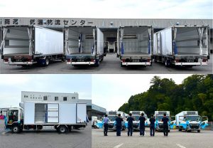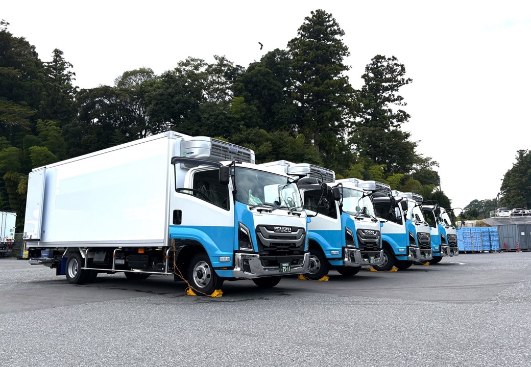 2025年9月18日(木)、4tワイド冷凍車両1台と4t標準冷凍車両3台が納車されました。